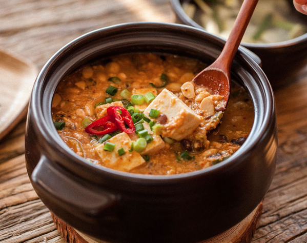 - 재료: 청국장, 돼지고기 또는 참치, 두부, 애호박, 대파, 고춧가루, 마늘.