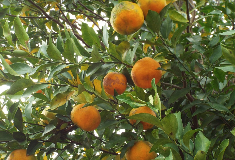 과일은 녹색에서 노란색으로 익으며, 크기와 모양은 일반 오렌지보다 작고 둥글며 평평한 형태를 갖고 있습니다.